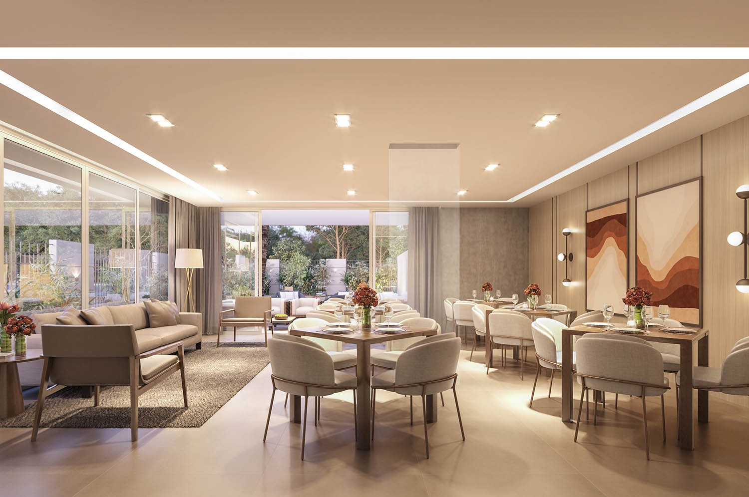 Espaços amplos ao ar livre, uma agradável área de lazer e alto padrão nos apartamentos são um convite à novas experiências.